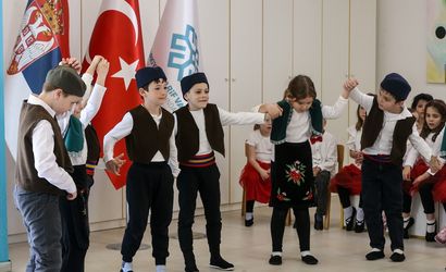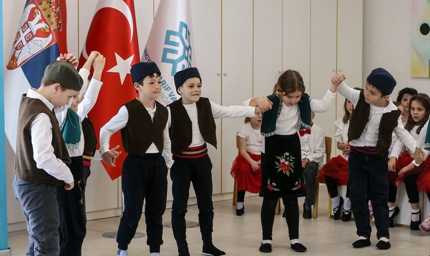 TMV'nin Belgrad'daki okulunda yapılan kutlamalarda çocuklar, Türkçe ve Sırpça şarkılar söyledi ve çeşitli halk oyunları sergiledi.