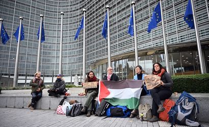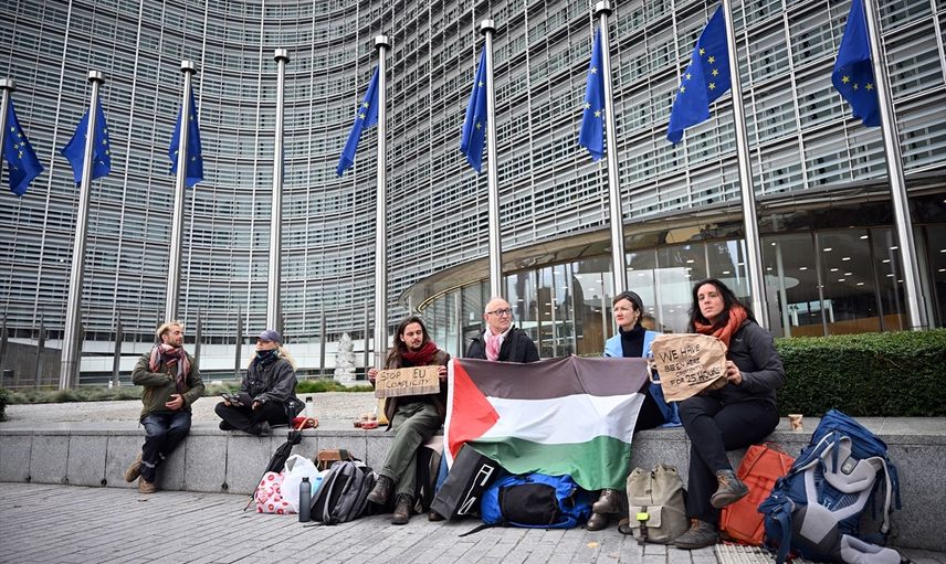 Avrupa Birliği (AB) Komisyonu binası önünde 25 saattir bekleyen bir grup, AB'ye İsrail’e yönelik baskı yapmayı bırakmaması ve Tel Aviv'i savaş suçlarından sorumlu tutması çağrısında bulundu.