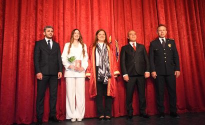 Evliliğe ilk adımı atacak çok sayıda çiftin nikah günü olarak 05.05. 2025’i tercih etmesi, Afyonkarahisar Belediyesi Evlendirme Servisi'nde yoğunluğa yol açtı. Afyonkarahisar Belediye Başkanı Burcu Köksal (ortada) da bugün dünya evine giren polis memurları Gizem Nur Kayabalı (sol 2) ile Mesut Duymuş'un (solda) nikahlarını kıydı. Çiftin nikah şahitliğini ise İl Emniyet Müdürü Ahmet Birtan Erol (sağ 2) ile İl Emniyet Müdür Yardımcısı Erdal Yanık (sağ 1) yaptı.