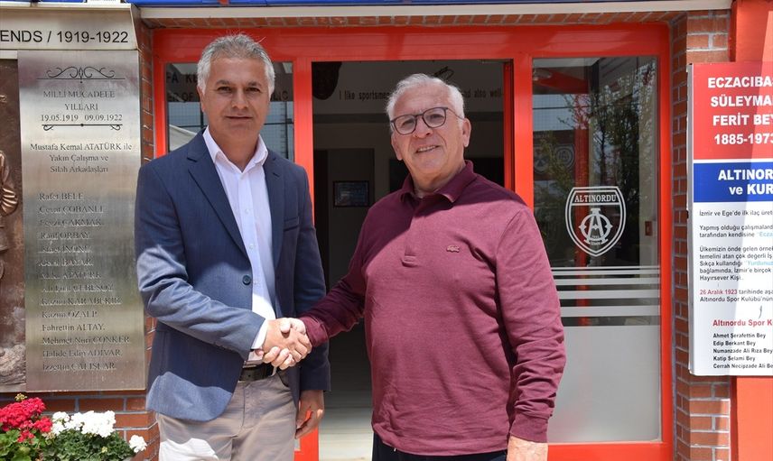 Nesine 2. Lig ekiplerinden Altınordu'da teknik direktörlüğe Namet Ateş (solda) getirildi. Altınordu FK Başkanı Seyit Mehmet Özkan (sağda) ve Ateş, Torbalı Metin Oktay Yerleşkesi'nde anlaşma sonrası fotoğraf çektirdi.