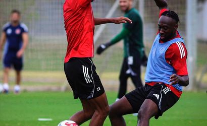 Hesap.com Antalyaspor, Trendyol Süper Lig'in 8. haftasında Çaykur Rizespor ile yapacağı maçın hazırlıklarına ara vermeden başladı. Atilla Vehbi Konuk Tesisleri'ndeki idmana katılan Jesper Ceesay (solda) ile Yohan Boli (sağda) bir pozisyonda mücadele etti.