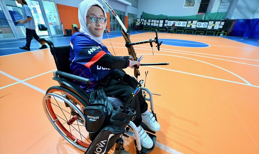 Düzce'de "ayrık omurga" (spina bifida) olarak adlandırılan doğumsal bozuklukla dünyaya gelen 11 yaşındaki Asuman Coşkun, 8 yaşında başladığı okçuluk sporunda yarışlara katılma hedefiyle çalışmalarını sürdürüyor.