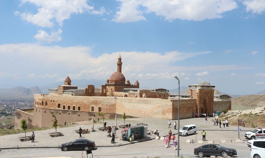 Ağrı'nın Doğubayazıt ilçesinde bulunan tarihi İshak Paşa Sarayı'nda muharrem ayı nedeniyle vatandaşlara aşure ikram edildi.