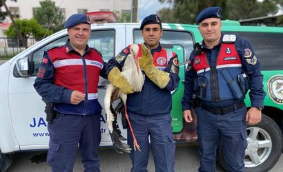 Aydın'ın Çine ilçesinde jandarma ekipleri, devriye görevleri sırasında yaralı bir leylek tespit etti.