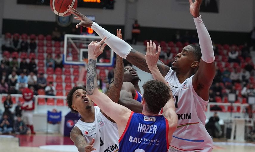 Türkiye Sigorta Basketbol Süper Ligi 8. hafta mücadelesinde Aliağa Petkimspor ile Bahçeşehir Koleji takımları, ENKA Spor Salonu'nda karşılaştı. Bir pozisyonda Bahçeşehir Koleji oyuncusu Göktuğ Baş (57) ile Aliağa Petkimspor oyuncusu Bryson Najee Williams (11) mücadele etti.