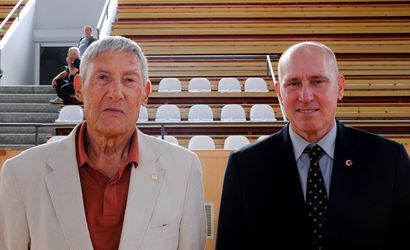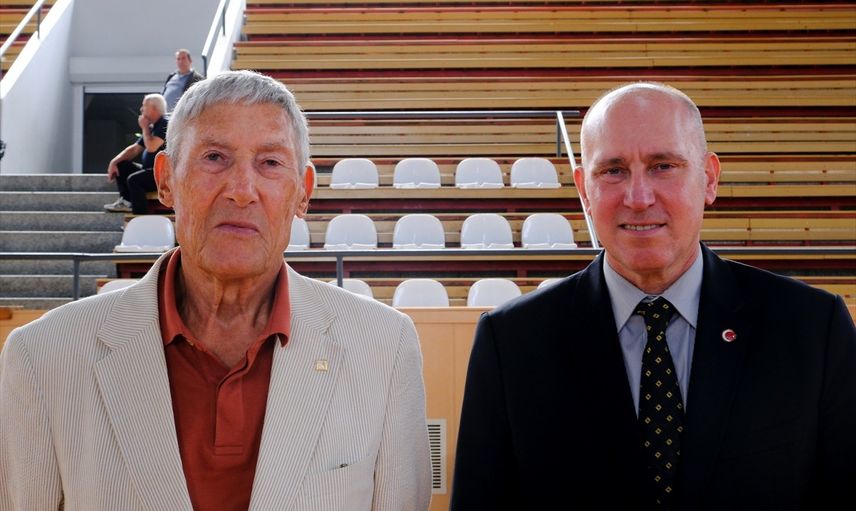 Türkiye Basketbol Federasyonu (TBF) Başkan Vekili Harun Erdenay (sağda) ve Eski milli basketbolcu ve antrenör Kemal Erdenay (solda) İstanbul Teknik Üniversitesi Ayazağa Kampüsü'nde AA muhabirine özel açıklamalarda bulundu.