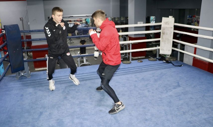 Trabzon'da amatör boksla ilgilenmesine karşın profesyonelliğe geçemeyen Ömer Çınar, bu spora yönlendirdiği iki çocuğunun Avrupa ve Türkiye'de aldıkları başarılı sonuçlarla hayalini gerçekleştirdi. Milli boksor Mehmet Han Çınar (sağda) ve kardeşi Batuhan Çınar (solda), birlikte antrenman yapıyor.