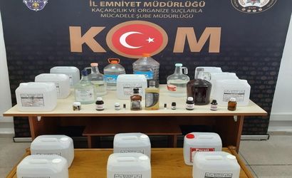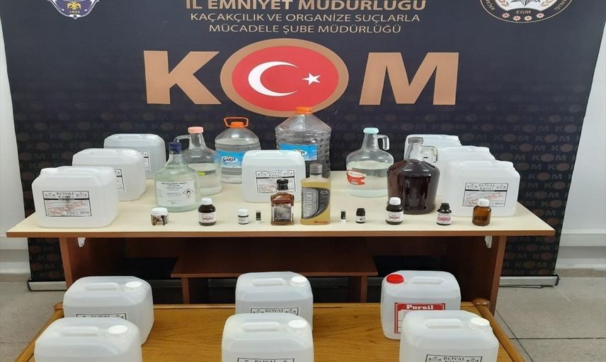 Polis ekipleri, söz konusu şahısların ev ve iş yerlerine yönelik operasyon düzenleyerek 185 litre etil alkol ve 7,5 litre sahte içki ele geçirdi.