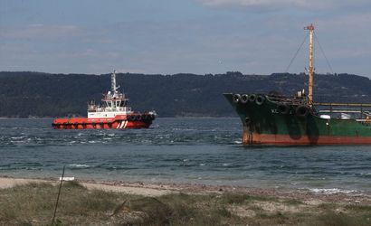 Çanakkale Boğazı'nda, yanaşma manevrası sırasında karaya oturan Türk bayraklı 'Kolin-2' atık taşıma tankeri başarıyla kurtarıldı.