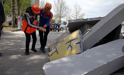 Çorum Belediyesi Engelli Eğitim ve Rehabilitasyon Merkezi'nde eğitim gören engelliler, AFAD'ın arama-kurtarma etkinliğine katıldı. Etkinlik kapsamında AFAD'ın kıyafet ve baretini giyen engelliler, arama-kurtarma ekibince araçlarla bulundukları yerden alınarak kurum bahçesinde oluşturulan enkaza getirildi.
