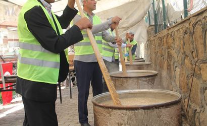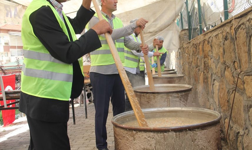 Çorum'un Oğuzlar ilçesinde Hıdırellez kutlamaları kapsamında gönüllü vatandaşlardan toplanan ürünlerle pişirilen 12 kazan aşure vatandaşlara dağıtıldı.