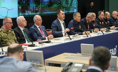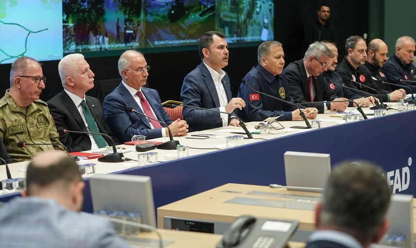 Çevre, Şehircilik ve İklim Değişikliği Bakanı Murat Kurum (sağ 3), İstanbul İl Afet ve Acil Durum Müdürlüğü'nde düzenlenen toplantının ardından basın mensuplarına açıklamalarda bulundu. Toplantıya İçişleri Bakanı Ali Yerlikaya (sağ 2), Sağlık Bakanı Kemal Memişoğlu (sağda), İstanbul Valisi Davut Gül (sol 2), 3. Kolordu Komutanı Korgeneral Sezai Öztürk (solda) ve AK Parti Genel Başkanvekili Efkan Ala (sol 3) katıldı.