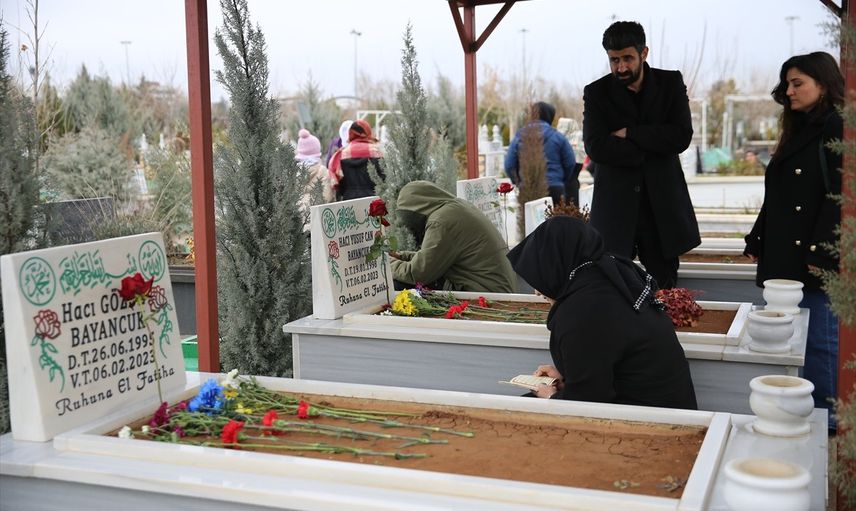 Diyarbakır'da 6 Şubat 2023'te meydana gelen depremlerde yakınlarını kaybedenler mezarlık ziyareti gerçekleştirdi. Ziyaretçiler, yakınları için dua etti, Kur'an-ı Kerim okudu.