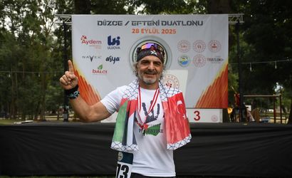 Düzce'nin Gölyaka ilçesinde yaklaşık 25 şehirden 100'ü aşkın sporcunun katılımıyla Efteni Duatlonu gerçekleştirildi. Sporcu Yaşar Artun, Gazze'ye yardım götüren Küresel Sumud Filosu'na destek için yarışların sonunda Mescid-i Aksa fotoğraflı ve "Palestine" yazılı tişört giydi.