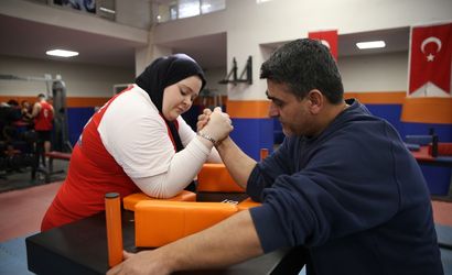 Kuzeniyle tutuştuğu bilek güreşini kazanarak başladığı sporda gençlerde 2 Türkiye, 1 Avrupa şampiyonluğu ve 3 dünya ikinciliği kazanan Şanlıurfa Büyükşehir Belediyesi sporcusu 16 yaşındaki Fehime Bülbül'ün (Fotoğrafta) yeni hedefi, daha çok çalışarak dünya şampiyonluğunu kazanabilmek.