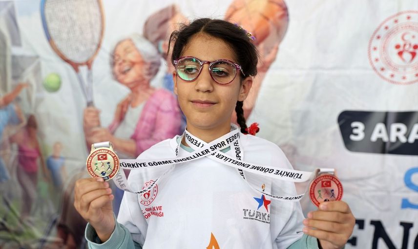Sivas'ta doğuştan görme engelli 13 yaşındaki Yağmur Özcan, ilk kez katıldığı yarışmalarda uzun atlamada birincilik, 100 metre koşuda ise üçüncülük elde etti.