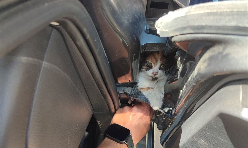 Kedinin sıkıştığını gören otomobil sahibi, durumu derhal 112 Acil Çağrı Merkezi'ne bildirdi. İhbar üzerine olay yerine yönlendirilen Hatay Büyükşehir Belediyesi itfaiye ekibi, kedi yavrusunu bulunduğu yerden kurtarmak için harekete geçti.