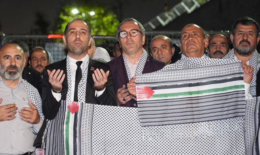 Protesto sonrası, grup üyeleri Gazze’de hayatını kaybedenler için dua etti.