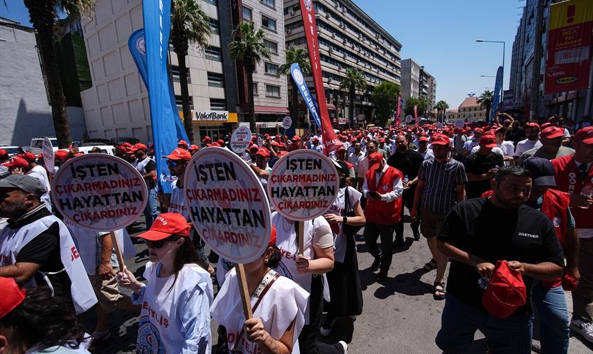 İzmir Büyükşehir Belediyesi'nde işten çıkarılan işçiler, Türkiye Belediyeler ve Genel Hizmetler İşçileri Sendikası (Belediye-İş) liderliğinde protesto eylemi düzenledi.