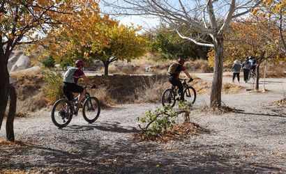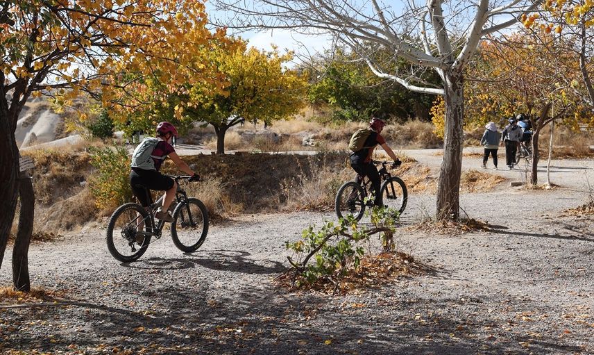 Kapadokya vadilerinde yer alan ağaç ve bitkilerin sarı tonlarına bürünmesi, doğanın sunduğu güzelliklerle kusursuz bir uyum sağladı. Yerli ve yabancı turistler, vadilerde yürüyüş yaparak, bisiklet sürerek ve bu dingin atmosferin tadını çıkararak sonbaharın keyfini çıkardılar.