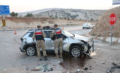 Kilis'te otomobilin refüje çarpması sonucu 5'i çocuk 9 kişi yaralandı.