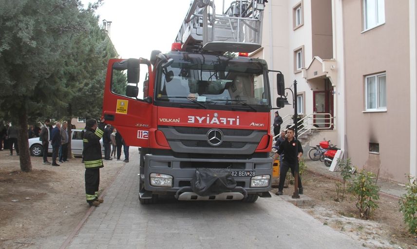 Konya'nın Beyşehir ilçesinde 4 katlı binada çıkan yangında yaralanan kadın hastaneye kaldırıldı. Olay yerine yönlendirilen ekipler, binanın üst katlarında mahsur kalanları itfaiye aracının merdiveniyle tahliye etti.