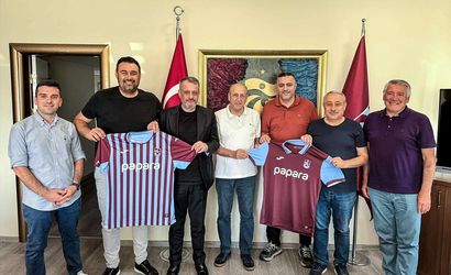 Kıbrıs Türk Futbol Federasyonu (KTFF) yöneticileri, Trabzonspor Kulübünü ziyaret etti. KTFF'nin ikinci başkan vekili Hüseyin Duvarcı (sol 2) ile eğitim üst kurul başkanı Hüseyin Ekmekçi (sağ 3), bordo-mavili kulübün başkan yardımcısı Ali Haydar Gedikli (sağ 2) ile genel sekreter Sami Karaman (sol 3) ile bir araya geldi.
