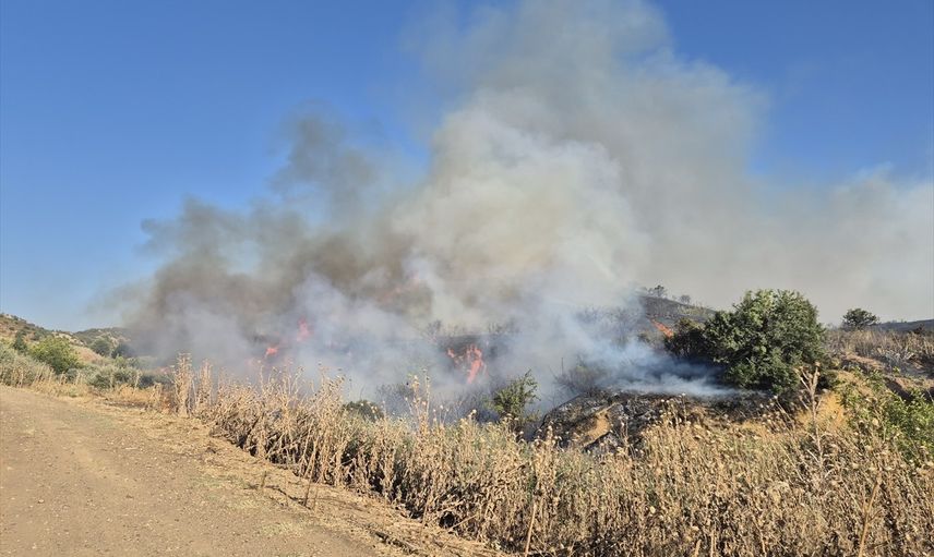 Manisa'nın Turgutlu ilçesi, Çepnidere Mahallesi'nde makilik alanda başlayan yangına müdahale çalışmaları devam ediyor. Otluk alanda alevlerin yükselmesi ile yangın, rüzgarın da etkisiyle hızla yayıldı.