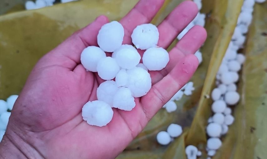 Mersin'in Erdemli ilçesinde etkili olan dolu, bazı tarım alanlarına zarar verdi.