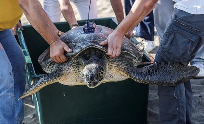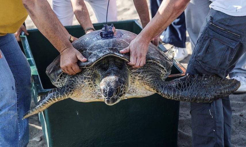 Mersin'de göç yolları ve kışlama alanlarının belirlenmesi amacıyla gerçekleştirilen proje çerçevesinde, uydu takip cihazıyla donatılan "Alata" adlı yeşil deniz kaplumbağası denizle buluşturuldu.