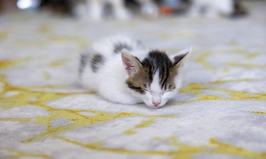 Mersin'de bir camide vaaz kürsüsünün altında doğum yaptıktan sonra sahiplendirilen anne kedinin 3 yavrusunun gelişimi sürüyor.