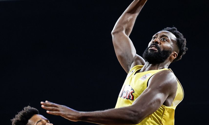 Türkiye Sigorta Basketbol Süper Ligi'nin 10. haftasında Mersin Spor ile Türk Telekom Servet Tazegül Spor Salonu'nda karşılaştı. Bir pozisyonda Mersin ekibinden Gabriel Olaseni (sağda) rakibiyle mücadele etti.