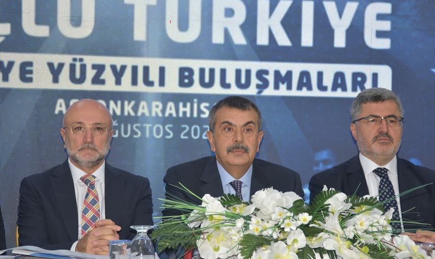 Milli Eğitim Bakanı Yusuf Tekin (ortada), Afyonkarahisar Öğretmenevi'nde düzenlenen "Türkiye Yüzyılı Buluşmaları" basın toplantısına katıldı.