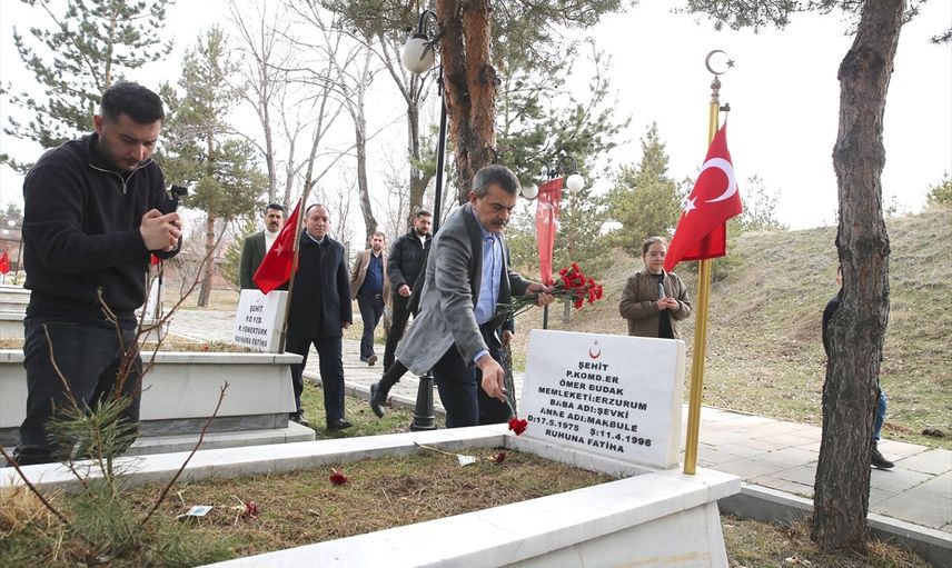 Milli Eğitim Bakanı Yusuf Tekin, Erzurum'da bayramlaşma programına katıldı, şehitlikleri ziyaret etti. Kent merkezindeki Kars Kapı Şehitliği'nde kabirleri ziyaret eden Tekin, mezarlara karanfil bıraktı.