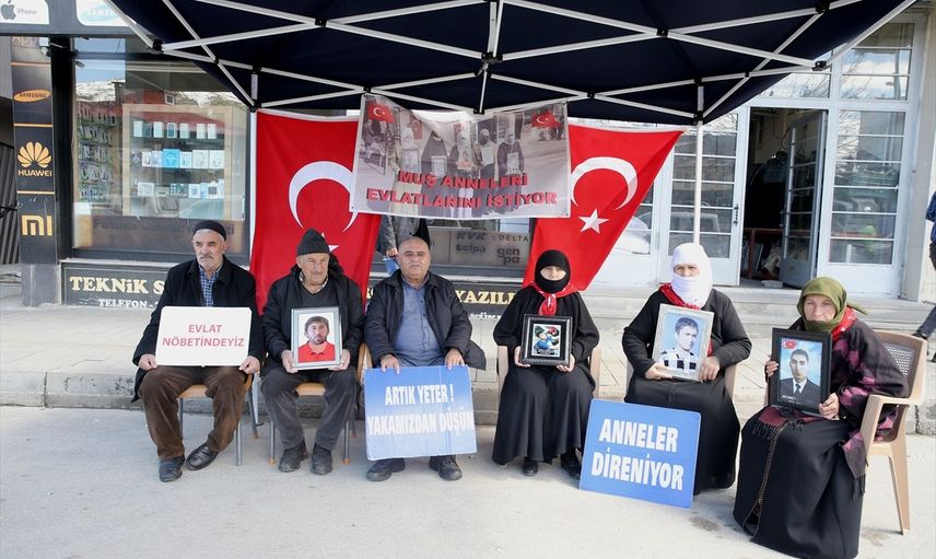 Muş'ta, PKK tarafından çocukları kaçırılan aileler, DEM Parti İl Başkanlığı önündeki protestolarını sürdürüyor. Her hafta çarşamba günü gerçekleştirilen eylemlerde, aileler çocuklarına kavuşma umudunu koruyor.