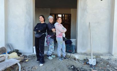 Samsun'da yaşayan kadın nakkaşlar Aynur Şeker, Nazlı Cezan ve Işık Kahrıman, metrelerce yüksekteki iskeleye çıkarak camilerde duvar süslemesi yapıyor.