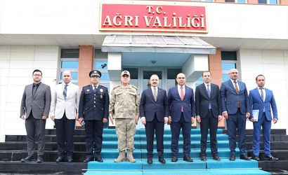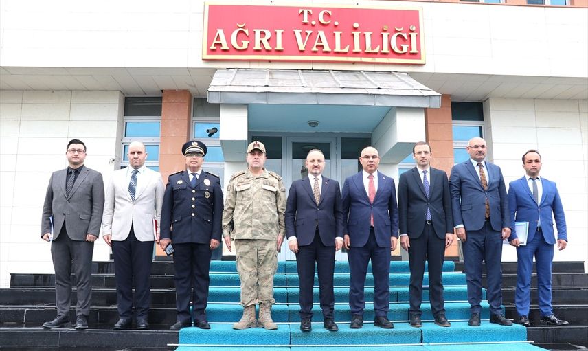 İçişleri Bakan Yardımcısı Bülent Turan (ortada), Ağrı Valiliği'ni ziyaret etti.