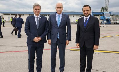 TBMM Başkanı Numan Kurtulmuş (ortada), Srebrenitsa Soykırımını Uluslararası Düşünme ve Anma Günü programlarında Türkiye'yi temsilen yer alacak. Resmi ziyaret kapsamında Bosna Hersek'in başkenti Saraybosna’ya gelen Kurtulmuş'u, Saraybosna Uluslararası Havalimanı’nda Bosna Hersek Temsilciler Meclisi Başkanı Denis Zvizdiç (solda) ile Türkiye’nin Saraybosna Büyükelçisi Emin Akseki (sağda) karşıladı.