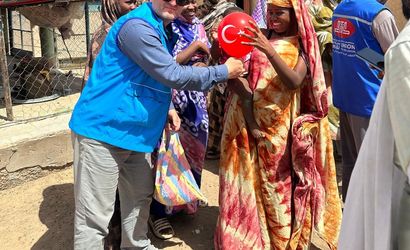 Türkiye'den Moritanya'ya gelen 22 kişilik TDV ekibi, Kurban Bayramı'nın ilk gününden itibaren ihtiyaç sahibi ailelerin yüzlerini güldürmek için yoğun bir çalışma yürütüyor. Ekip, çocuklarla oyun oynayıp, bayramın neşesini paylaşarak balon, şeker ve oyuncak dağıtımı yaptı.