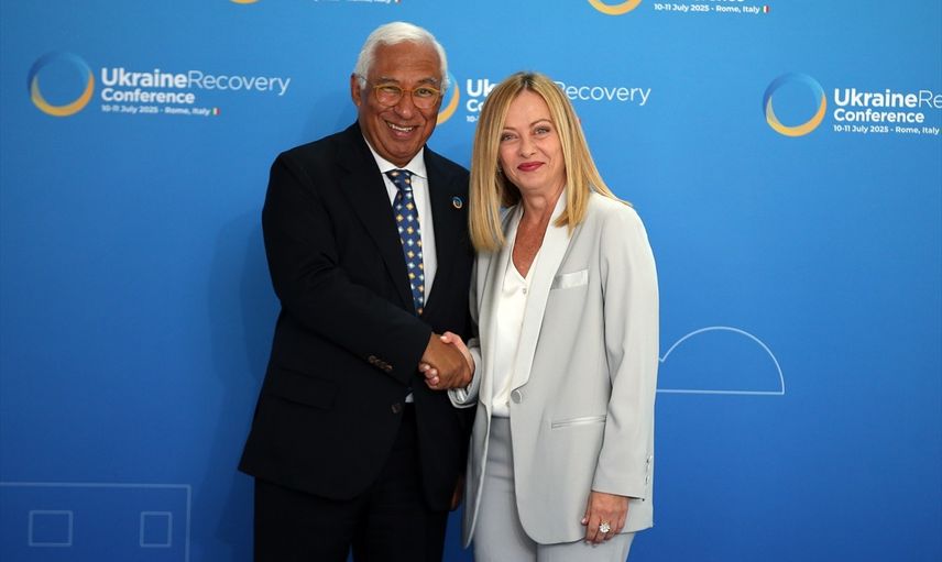 “Ukrayna'nın Yeniden İnşası Konferansı” İtalya’nın başkenti Roma’da La Nuvola konferans merkezinde başladı. Konferans öncesi İtalya Başbakanı Giorgia Meloni (sağda), AB Konseyi Başkanı Antonio Costa'yı (solda) karşıladı.