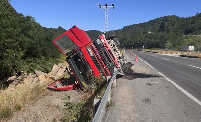 Zonguldak'ta meydana gelen bir trafik kazasında, S.D. isimli sürücünün kullandığı 41 NP 433 plakalı tomruk yüklü tır, Zonguldak-Ankara kara yolu Sapça mevkisinde devrildi.