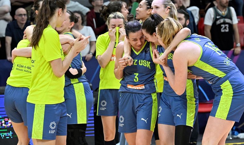İspanya'nın Zaragoza kentinde düzenlenen Basketbol FIBA Kadınlar Avrupa Ligi 6'lı Final'de Çimsa ÇBK Mersin'i finalde 66-53 yenerek şampiyon olan Çekya temsilcisi ZVVZ USK Prag, kupasını aldı. Takım oyuncuları sevinç yaşadı.